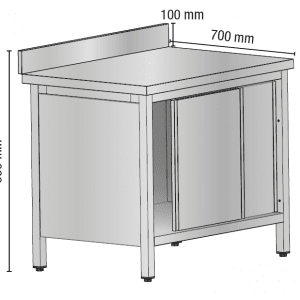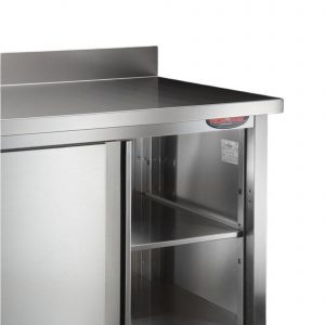 Radni stol sa kliznim vratima izrađen od visokokvalitetnog nehrđajućeg čelika osigurava trajnost i otpornost na koroziju.