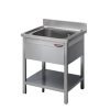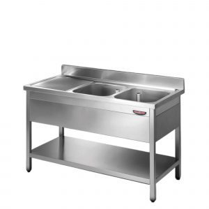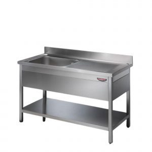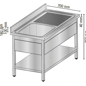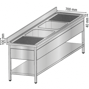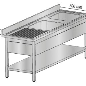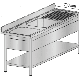 Inox radni stol sa sudoperom i površinom za cijeđenje izrađen od visokokvalitetnog nehrđajućeg čelika pruža trajnost i otpornost na koroziju. Dostupan s jednim ili dva sudopera, koji se mogu postaviti lijevo ili desno od površine za cijeđenje, opremljen je odvodom i preljevnim otvorom. Stabilna konstrukcija, podesive noge i donja polica čine ga idealnim za profesionalne kuhinje, trgovine i ostale djelatnosti.